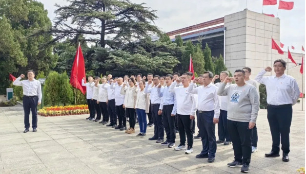 纪念馆前,全体党员正身伫立,面向党旗,重温入党誓词,在铿锵誓言声中,赓续红色血脉、担当时代使命的信念更加坚定。